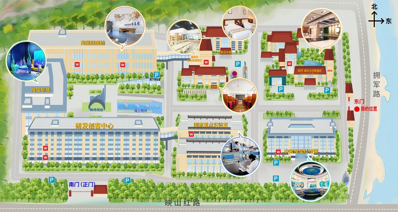 参观路线:中国海藻科技馆—国家重点实验室—海藻部落—海藻健康舫—海洋生活家酒店