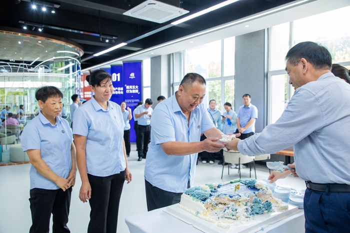 参观结束后,一场温馨而富有意义的茶话分享会在明月文化中心举行。董事长张国防亲自为庆典切分蛋糕,将喜悦分享给每一个明月家人。